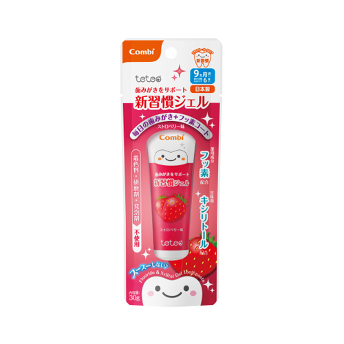 ■テテオ 歯みがきサポート新習慣 ジェルストロベリー味 30g 甘い ストロベリー 薬用 歯磨き