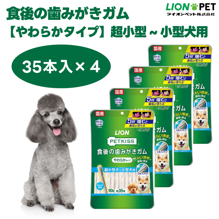 ■ライオン PETKISS 食後の歯みがきガム やわらかタイプ 超小型~小型犬用 90g 35本 x4個 犬 歯磨き おやつ ミルク風味 LIONPET