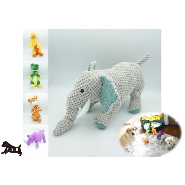 ■T.S.Hペット 噛むおもちゃ 【ゾウ】35センチ 動物 ぬいぐるみ 音が鳴る 丈夫 犬 歯磨き 知育玩具 ストレス発散 小型犬 中