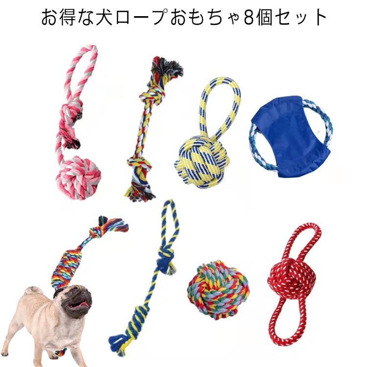 ■犬ロープおもちゃ 犬おもちゃ デンタルケア 犬用玩具 噛むおもちゃ 8個セット ペット用 コットン ストレス解消 丈夫 耐久性 清潔 歯磨き