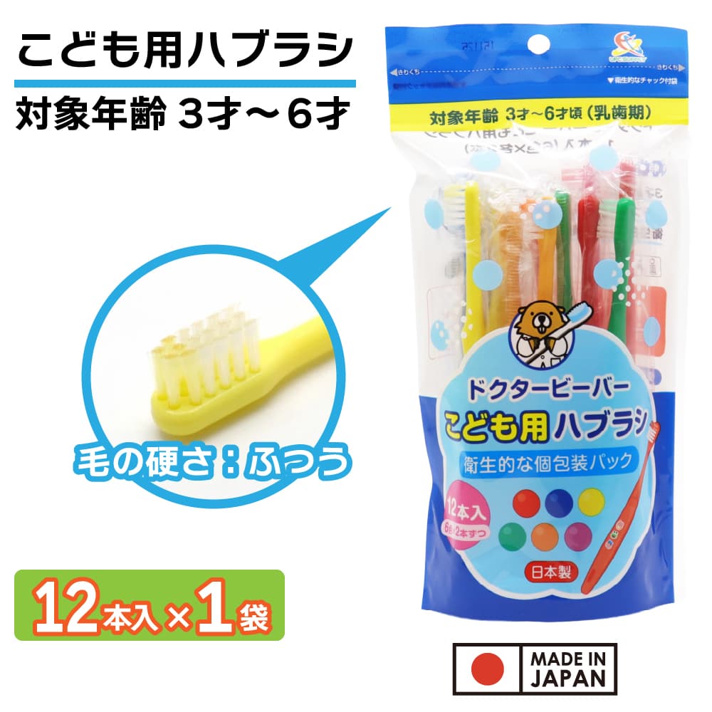 ■歯ブラシ 子供用 ふつう 12本入り 3才〜6才 こども用ハブラシ 歯磨き キッズ 個包装 日本製
