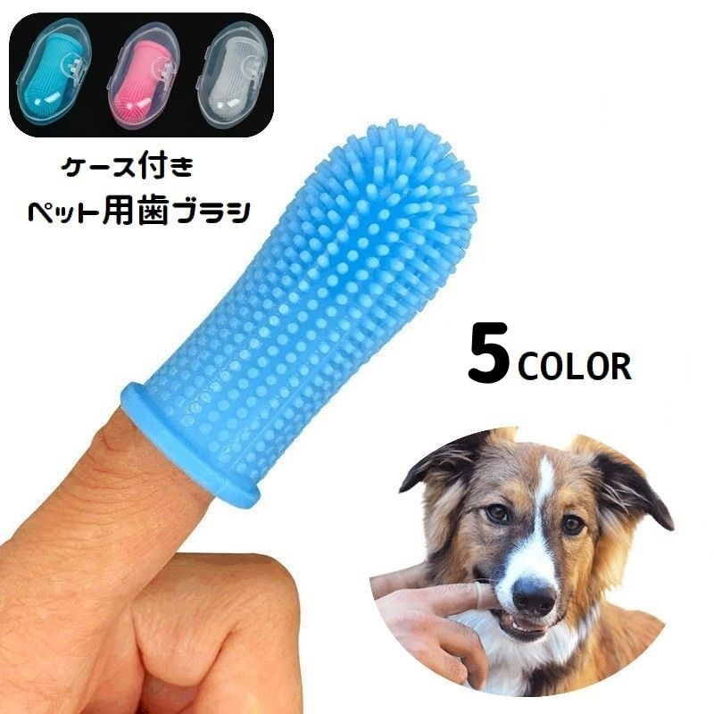 ■ペット用歯ブラシ 指サック型 収納ケース付き 犬用 猫用 シリコン 柔らかい デンタルケア 歯磨き 口腔ケア イヌ用 ネコ用