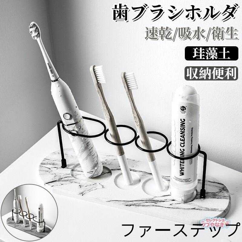 ■歯ブラシホルダ マーブル 歯ブラシスタンド 珪藻土 除菌 4本用 速乾 吸水 防カビ 多機能ベースフレーム 収納ラック 珪藻土トレー 歯磨き