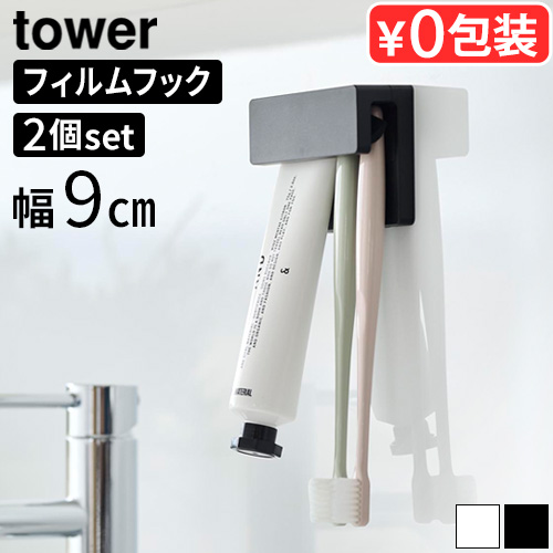 ■タワー 山崎実業 tower フィルムフック差し込み式歯ブラシ & チューブホルダー W9 2点セット YAMAZAKI フィルムフック 歯ブラシ収納 歯磨き