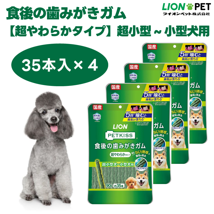 ■ライオン PETKISS 食後の歯みがきガム 超やわらかタイプ 超小型~小型犬用 90g 35本 x4個 犬 歯磨き おやつ LIONPET