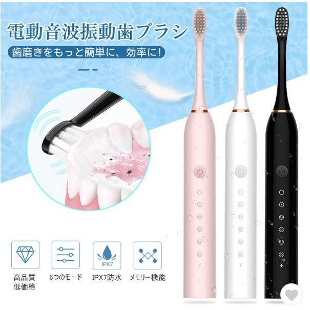 電動歯ブラシ 音波歯ブラシ 替えブラシ 充電式 本体 超音波 歯ブラシ IPX7 防水 歯磨き 静音 強力 携帯 口臭予防 歯石予防 子供 大人 オーラルケア