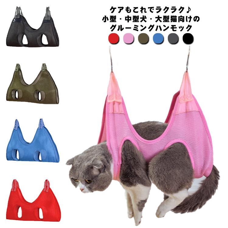 ■ペット グルーミングハンモック 吊り メッシュネット 爪切り 歯磨き シャンプー 耳掃除 ペット美容 体拭き 暴れ防止 犬用品 XS S M L 全7