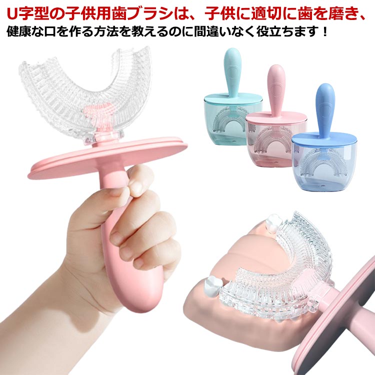 ■歯ブラシ 子供 こども かわいい ハブラシ 2本セット 歯磨き はみがき はぶらし マウスピース型 握りやすい 防水用 軽量 360度歯ブラシ u