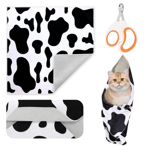 ■グッズ お助け 猫 包むだけ ハンカチ 包むだけ マジックテープのように 正方形 歯磨き くっつくクロス 爪切り トリミング タオル カメラ