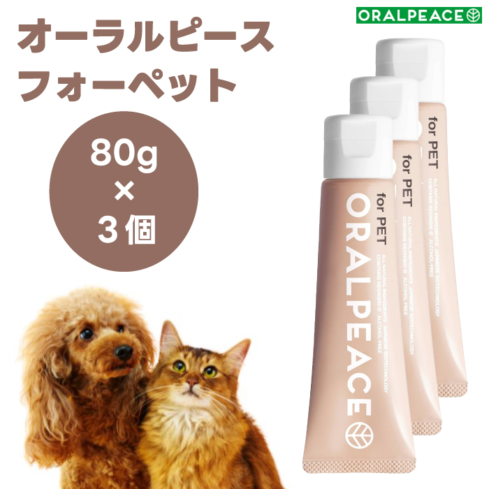■オーラルピース フォーペット 歯磨き&口腔ケアジェル 80gx3個 犬 猫 ネオナイシン-e配合 歯石 口臭 口腔ケア 無添加 ORALPEACE
