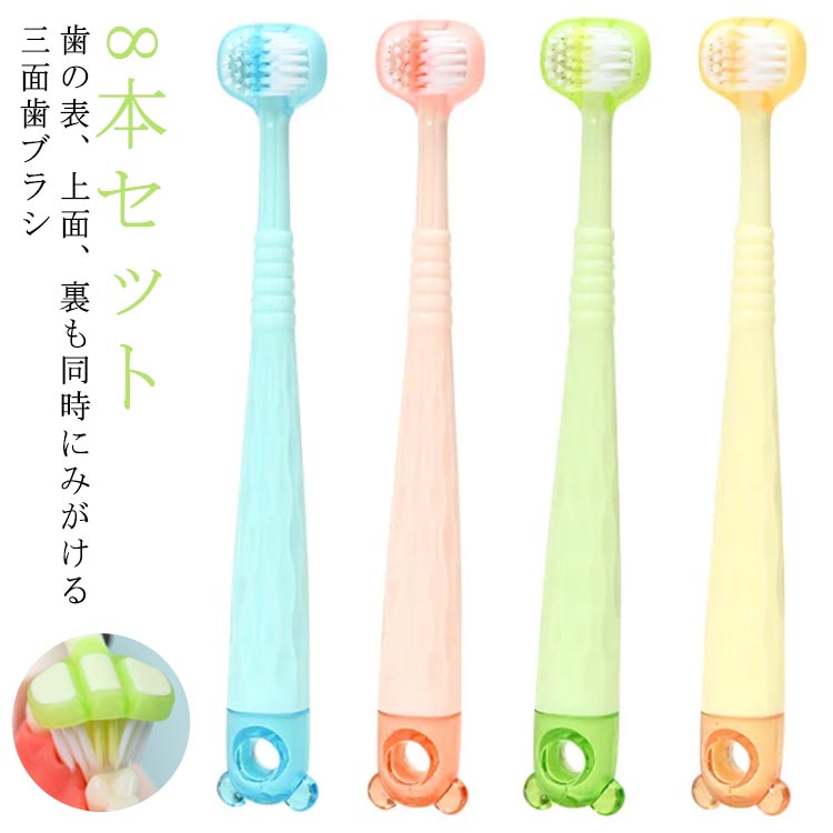 ■歯ブラシ 8本セット ハブラシ 子供 3面歯ブラシ 三頭歯ブラシ トラベル歯ブラシ やわらかめ 効果的 柔らかい ソフトタッチ 子ども 歯磨き