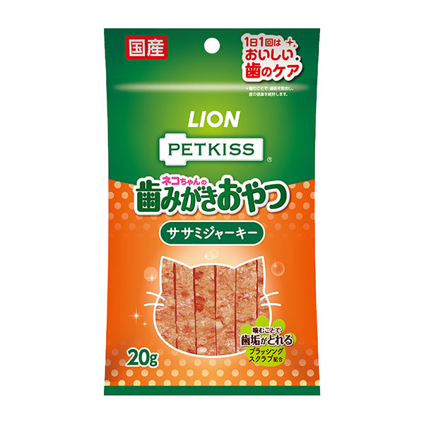 ■ライオンペット ペットキッス ネコちゃんの歯みがき おやつ ササミジャーキー 20g 猫 歯磨き