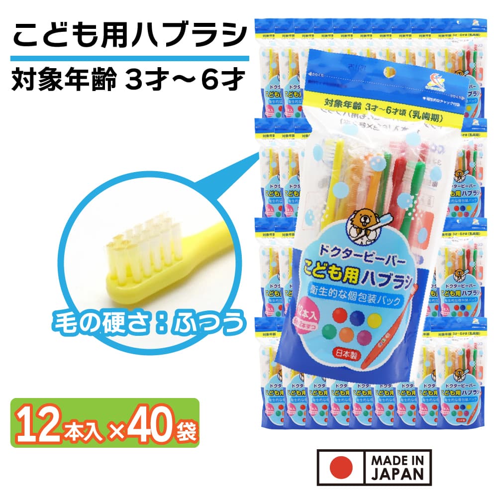 ■歯ブラシ 子供用 ふつう 480本(12本入り×40袋) 3才〜6才 こども用ハブラシ 歯磨き キッズ 個包装 日本製