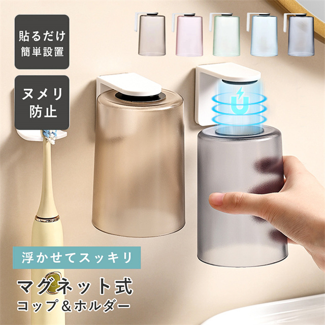 ■送料無料 【2点目特価】 コップホルダー 洗面所 洗面台 マグネット 歯磨き 歯磨きコップ スタンド ホルダー収納 おしゃれ 浮かせる 家族