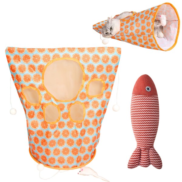 ■CANPLUS 2個パック 猫 玩具 噛む おもちゃ 人気 トンネル 魚型 猫のおもちゃ けりけり 歯磨き 一人遊び 天然 耐久性 噛むおもちゃ またた