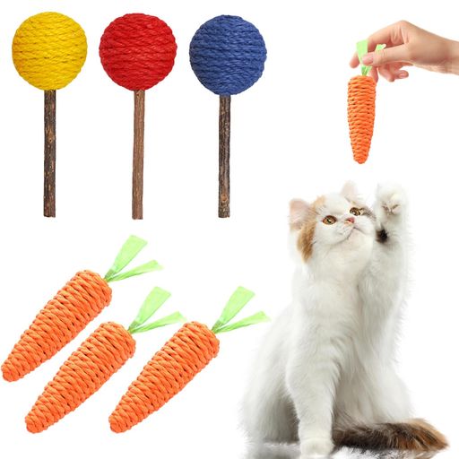■CANPLUS 猫 おもちゃ 噛むおもちゃ ぬいぐるみ 6本入り またたびの木 (3本入り)+人参おもちゃ(3本入り) 人気 歯磨き 歯ぎしり棒 噛むステ