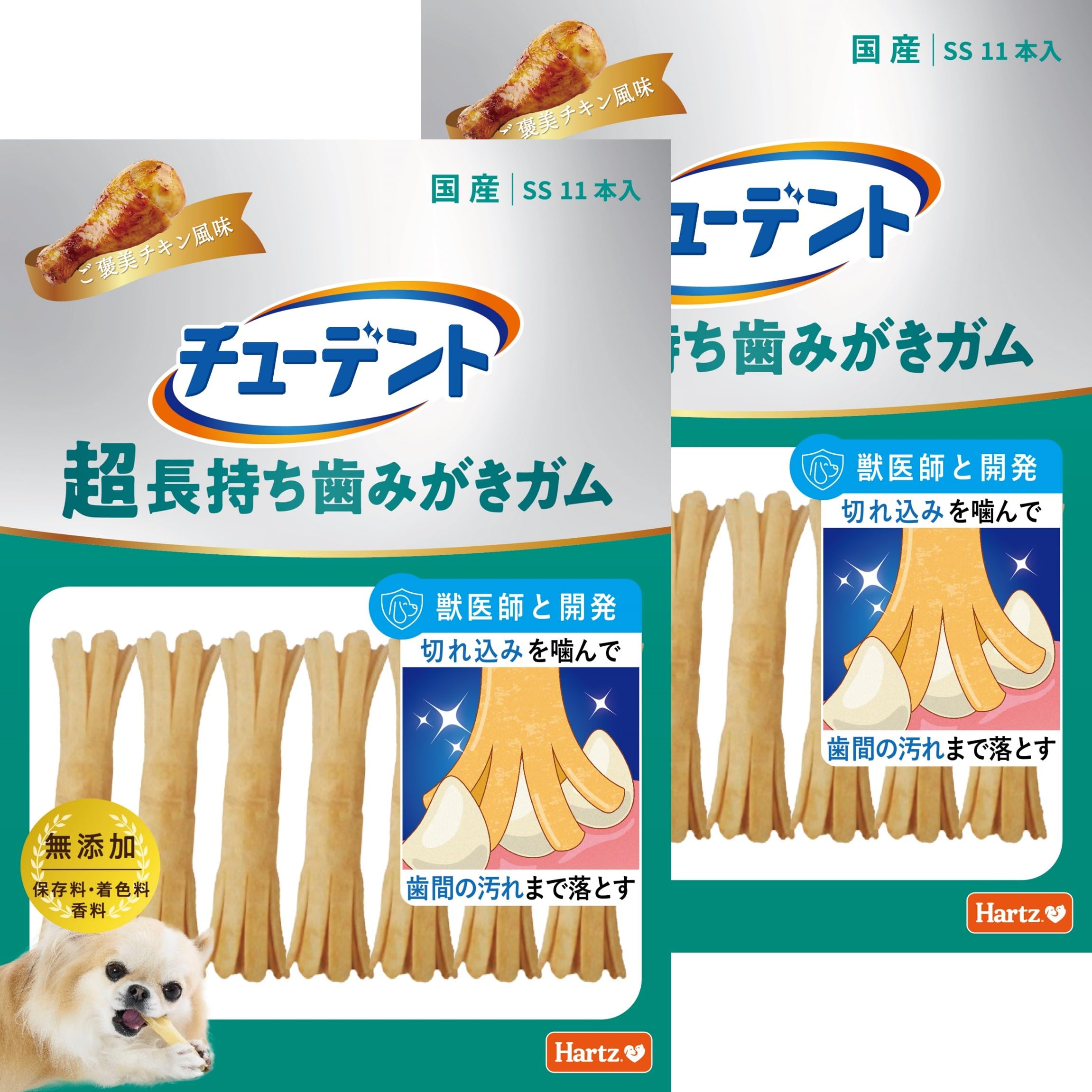 ■チューデント 超長持ち歯みがきガム SS 超小型犬 ご褒美チキン風味 11本入×2袋 ハーツ(Hartz) 犬用おやつ 犬用ガム 歯磨き デンタルケア