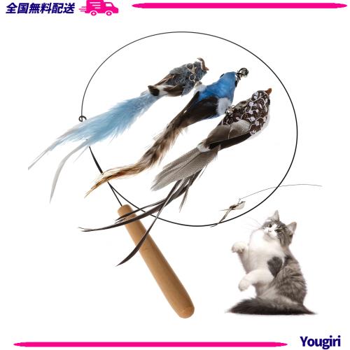 ■GHOSTCAT 猫じゃらし 猫おもちゃ 3点セット 鳥 羽のおもちゃ 鈴付き 歯磨き 一人遊び 猫遊び 天然の羽 ふわふわ 頑丈な釣り竿 切替でき