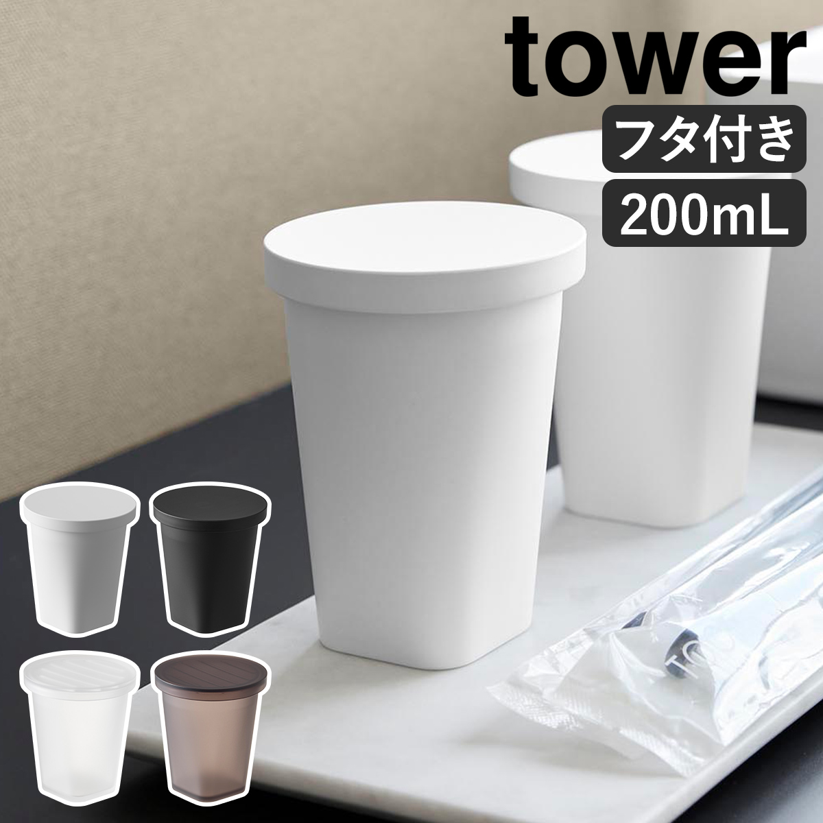 ■[ タンブラー&スタンキャップ タワー ] 山崎実業 tower タンブラー 歯磨き コップ フタ キャップ 200mL 歯磨きコップ 歯みがき コース