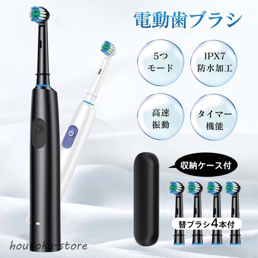 電動歯ブラシ 替えブラシ4本付き 歯ブラシ 歯垢除去 IPX7防水 5つモード 振動 水洗い 歯磨き タイマー 回転式 極細毛先 家庭
