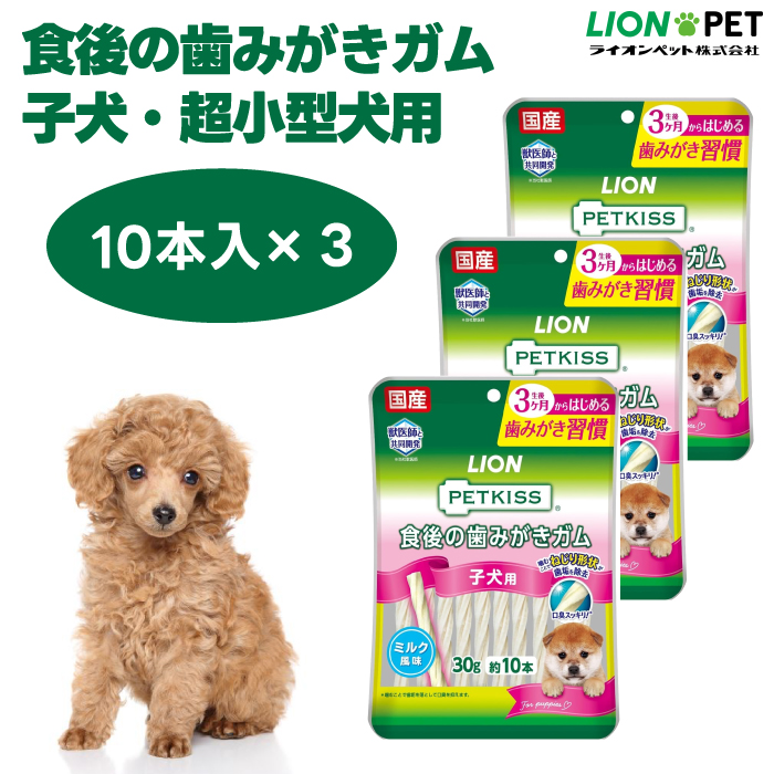 ■ライオン PETKISS 食後の歯みがきガム 子犬用 超小型~小型犬用 30g 10本 x3個 犬 歯磨き おやつ ミルク風味 LIONPET