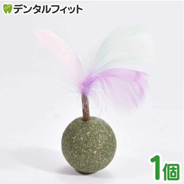 ■フェザー付きキャットニップボール【キャットニップ ボール ストレス解消 歯磨き 回転 遊び 舐める 運動調節 羽つき またたび マタタビ