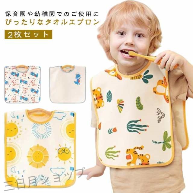 2枚セット タオルエプロン 前掛け よだれかけ スタイ 大きめ ループタオル かわいい お食事エプロン 保育園 幼稚園 タオル 子供 歯磨き 手洗い 手拭きタオル 入園準備 入学準備 園児 通園 男の子 女の子 キッズ 子ども 送料無料