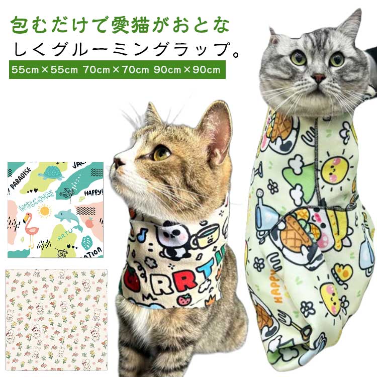 ■軽量 バッグ 猫 90*90cm 脱着 猫用ラップ ペット 爪切り 簡単 多機能 噛みつき防止 爪切り 耳掃除 歯磨き 猫用グルーミングラップ 固定