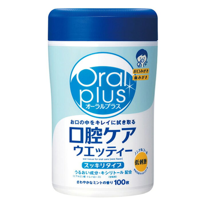 ■アサヒ オーラルプラス 口腔ケアウエッティー スッキリタイプ 100枚 日本製 介護 介護用 口腔ケア オーラルケア 歯みがきシート 歯磨き