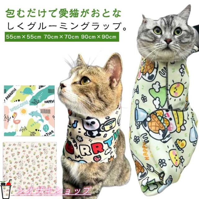 ■猫用グルーミングラップ 90*90cm 軽量 固定 歯磨き 猫用ラップ バッグ 爪切り ペット 多機能 猫 70*70cm 耳掃除 噛みつき防止 包むだけ