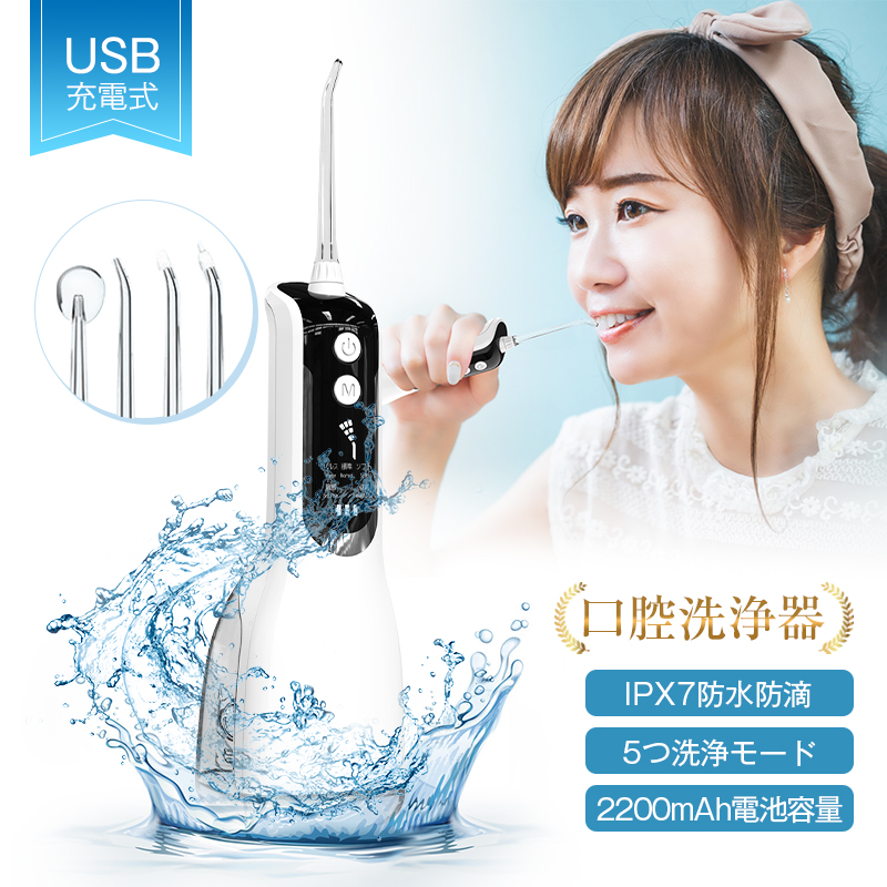 ■口腔洗浄器 携帯用 口腔洗浄機 超音波 口腔ケア マウスウォッシャー 歯磨き 矯正 歯間 歯垢洗浄 USB IPX7防水 替えノズル 歯茎ケア 海外