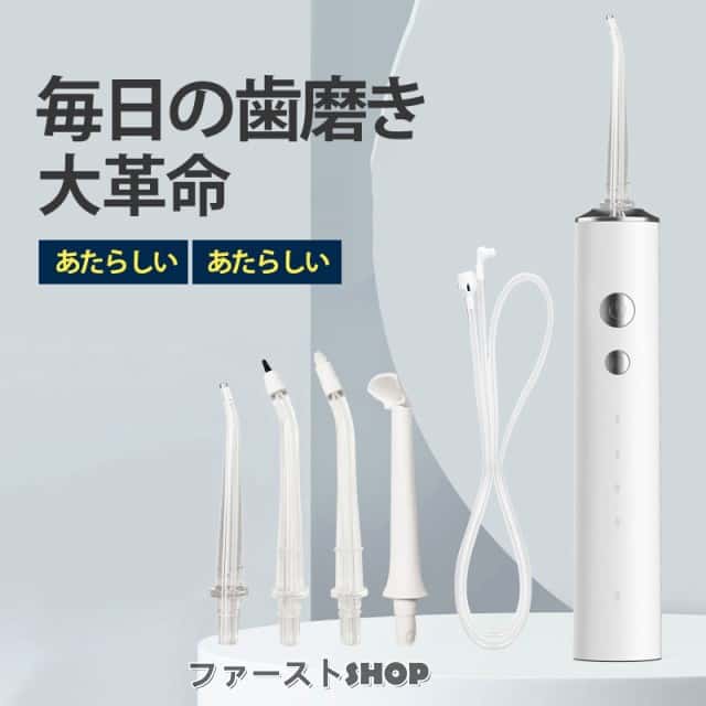 【口腔洗浄器の2つの効果】1.清潔な口内環境を保つ2.歯石をできにくくする【5つのモードがある】各モードの機能:1.パルスモード:強い水圧、深いところを洗浄し、歯茎をマッサージします。2.スタンダードモード:標準水圧、効率的に洗浄し、日常的な使用ニーズを満たします3.ソフトモード:弱い水圧、優しく洗浄し、歯ぐきが敏感な方に適しています。4.センシティブモード:強弱交代、歯が敏感な方と初めてご使用する方に適しています。5.間欠ジェットモード:定点噴射、歯列矯正している方に適しています。【その他の特徴】1.USB充電式2.残電量表示3.手軽なハンディタイプ4.330ml水タンク5.注水しやすい※説明書は外国語となります。※配送または仕入状況により商品の箱に