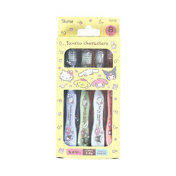 ■園児用 歯ブラシ やわらかめ サンリオキャラクター 8本入 TB5SE [乳歯期 歯磨き 虫歯予防 キャップ付き スケーター]