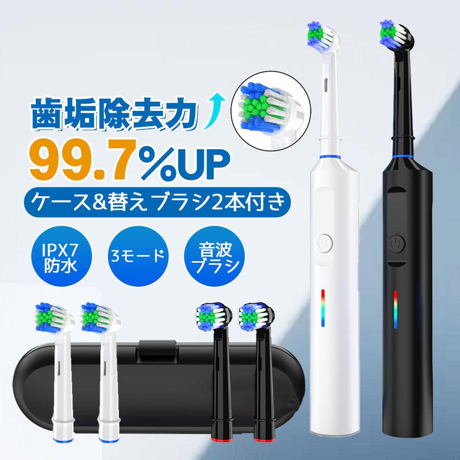 電動歯ブラシ 音波ブラシ 丸形電動歯ブラシ 替えブラシ2本 充電式 3モード 収納ケース付き 防水 回転式 歯石除去 歯垢除去 歯磨き