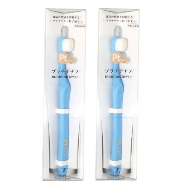 ■バイオエポック プラチナナノ manmou 歯ブラシ 子供・女性用 ( 小サイズ ) ブルー 2本セット [ 歯磨き マンモウ 極細毛 日本製 ナノ 子ど