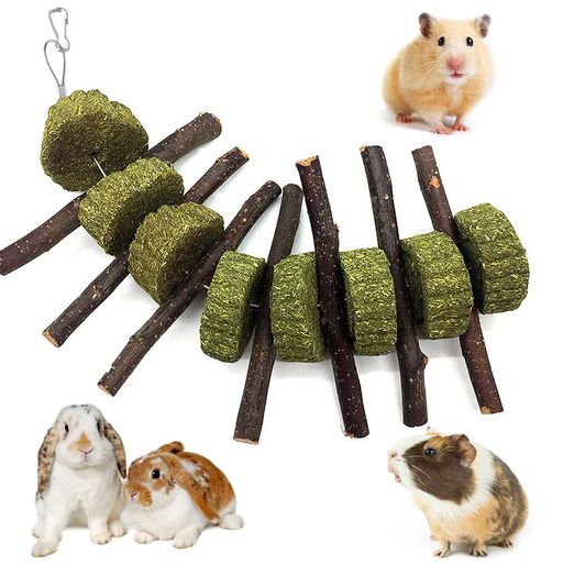 ■YBGGJO ハムスター 歯磨き 牧草塊とりんご枝 うさぎ チンチラ ?む あそび道具 おもちゃ ストレス 運動不足 解消 腸炎防止 吊り下げ 齧り