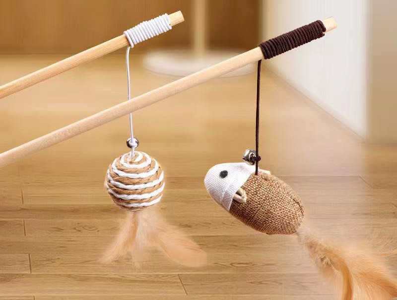 ■猫じゃらし 猫おもちゃ ねこじゃらし 釣り竿 子猫 天然素材 送料無料 木製 羽根 鈴付き ネズミぬいぐるみ 綿 麻 リネン 歯磨き ストレス