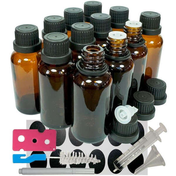 ■NKK 30ml 遮光ガラス瓶 (12本セット) ドロッパー&スポイト付き - エッセンシャルオイル、アロマオイル、香水などの保存に (茶色)