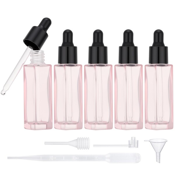 ■Segbeauty スポイトボトル ピンク 7ml 5本入り アロマオイル保存容器 ガラスボトル エッセンシャルオイル 精油小分け マッサージ フレグ