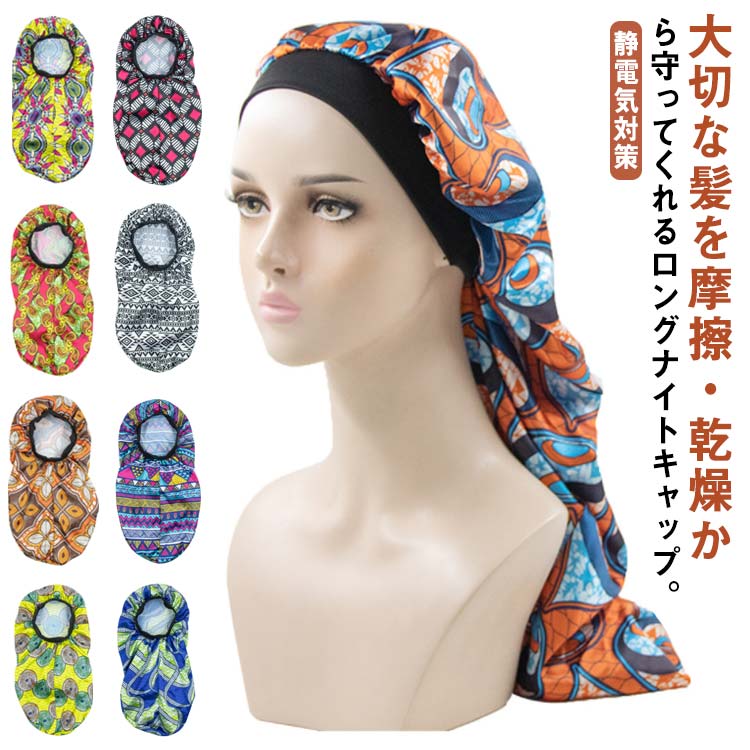 ■送料無料 ナイトキャップ ロングヘア 髪型くずれない おやすみキャップ 柄 おやすみ キャップ ロングナイトキャップ 潤い 美髪 ヘアケア