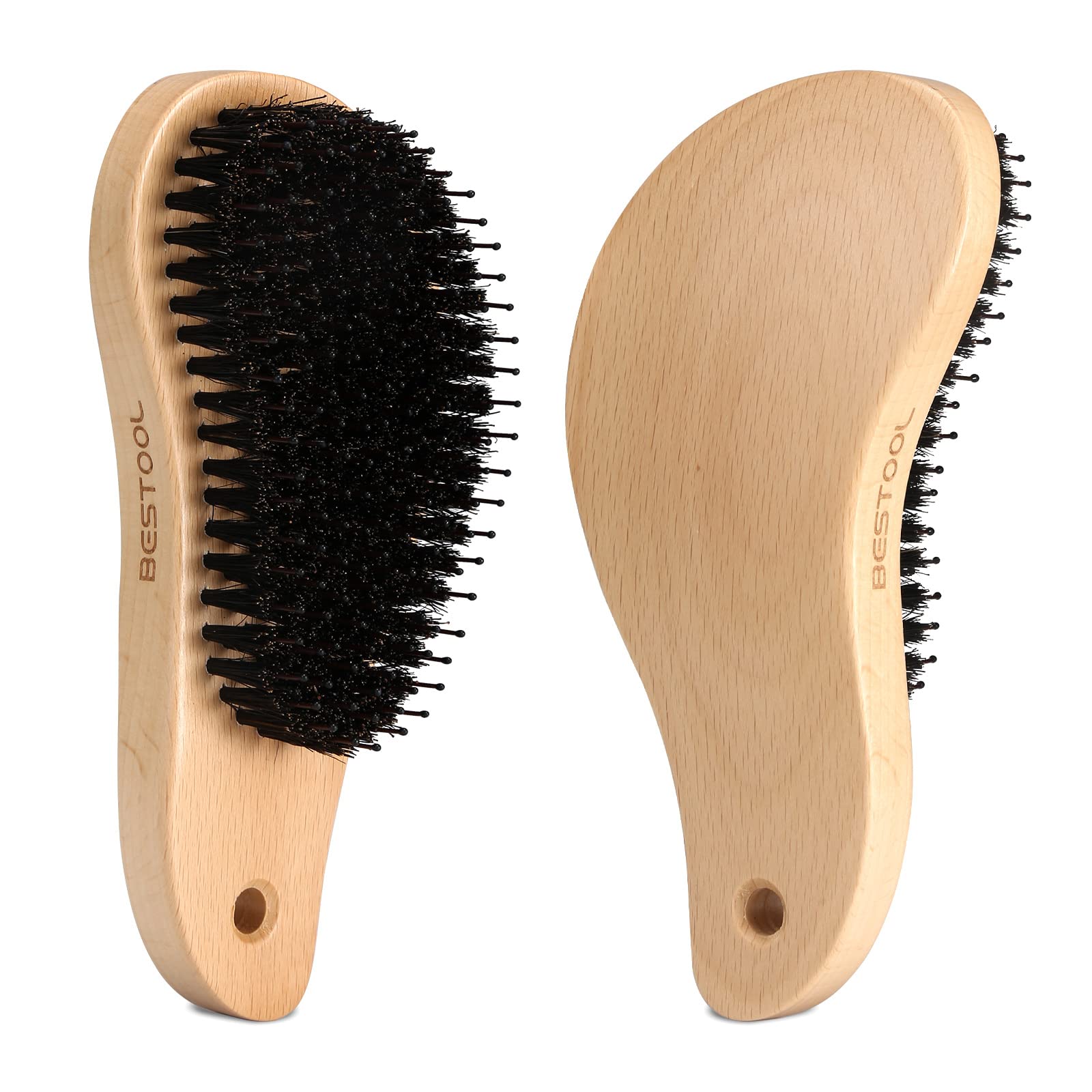 BESTOOL ヘアブラシ 豚毛 パドルブラシ くし 櫛 メンズ レディース こども ヘアケア コーム 頭皮マッサージ サラサラ 人気 艶髪 絡まない 髪質改善(S形)【材質】ブナ (柄) 天然ゴム(台座)天然豚毛+ナイロン(くし歯) 長さ16.5cm 幅:7.5cm 高さ:4cm。0.25KG。付属品:ヘアブラシクリーナー 1個、収納袋 1個。【髪質を改善】豚毛ブラシは頭皮の皮脂を髪の端から毛先まで運ぶのに役立ちます。この皮脂は髪をつややかにする最高の天然リンスです。長期間使用することで髪質が改善されます。私達の豚毛ブラシは丸いナイロン毛を追加し、あなたの髪を光沢があると同時に、非常に効果的にもつれた髪を除去し、頭皮をマッサージし、全く髪の毛を引っ張らず、毎回髪を梳くのはマッサージです。【頭皮をマッサージ】天然豚毛ブラシで髪を梳かす時、凹凸のあるブラシ針が髪に入り、やさしく頭皮まで届きます。適当に圧力を加え、その高い弾力を利用して頭皮への接点を増やすことができ、直接頭皮にある汗腺、毛嚢及びツボを刺激し、毛根の血液循環を促進させます。よく使いますと覚醒健脳