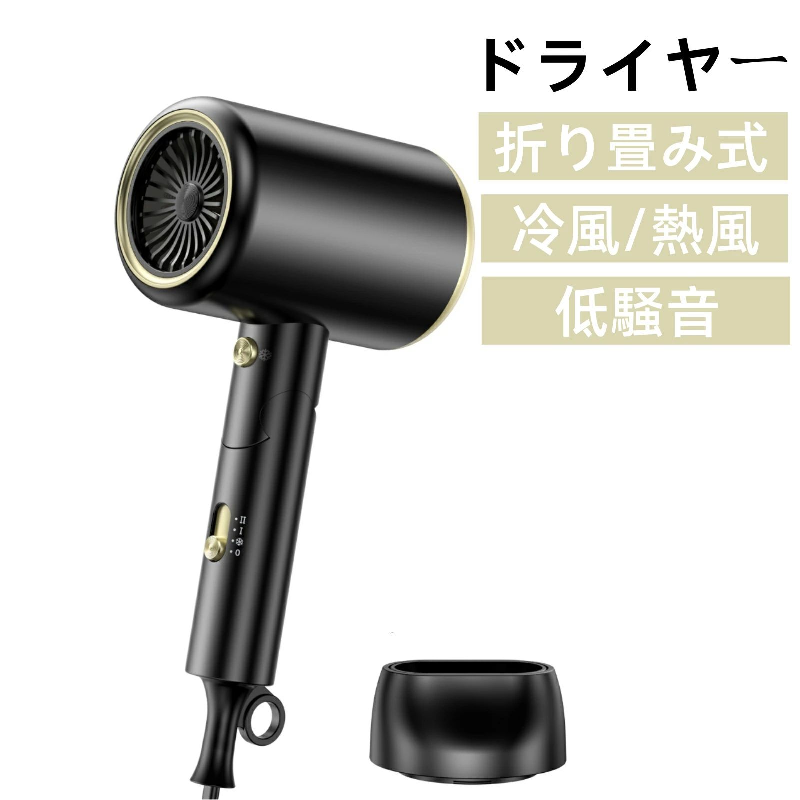 2025最新型 ドライヤー 大風量 速乾 軽量 折り畳み式 高濃度マイナスイオン 1400W 恒温 ヘアケア 冷熱風 3段階風量調節 ノズル付き コンパクト (ブラック)