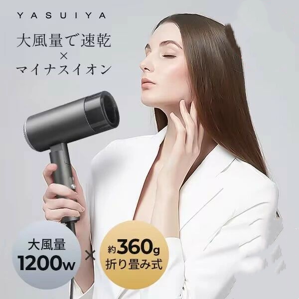 ドライヤー 大風量 速乾 折り畳み式 ヘアドライヤー コンパクト マイナスイオン 髪 スピーディー 軽量 軽い 温度調整 ヘアケア 髪質改善 美容家電 ノズル付き 静電気除去 おすすめ 1200W 短時間 旅行用 冷熱風 プレゼント