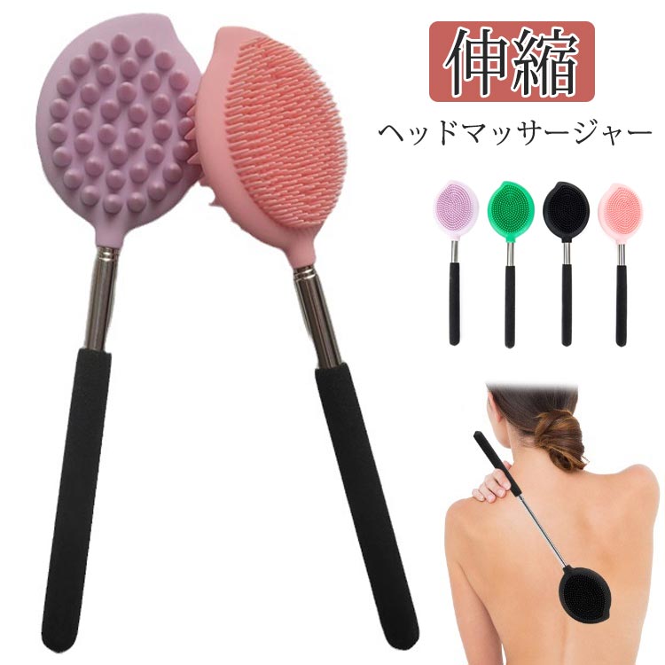 ■ヘッドマッサージャー 頭皮ブラシ 頭皮マッサージ スカルプブラシ 背中かき棒 伸縮 お風呂 ヘアケア 頭皮 かゆみ 頭皮ケアブラシ 孫の手
