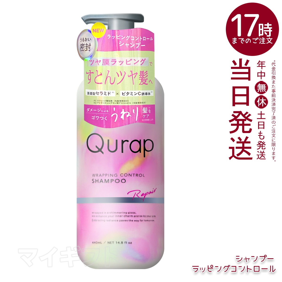 【国内正規品】Qurap キュラップ ラッピングコントロール シャンプー 440ml 浸透型ケラチン ビタミンC誘導体 保湿 ヘアケア ダメージ パラベンフリー 合成着色料フリー 送料無料