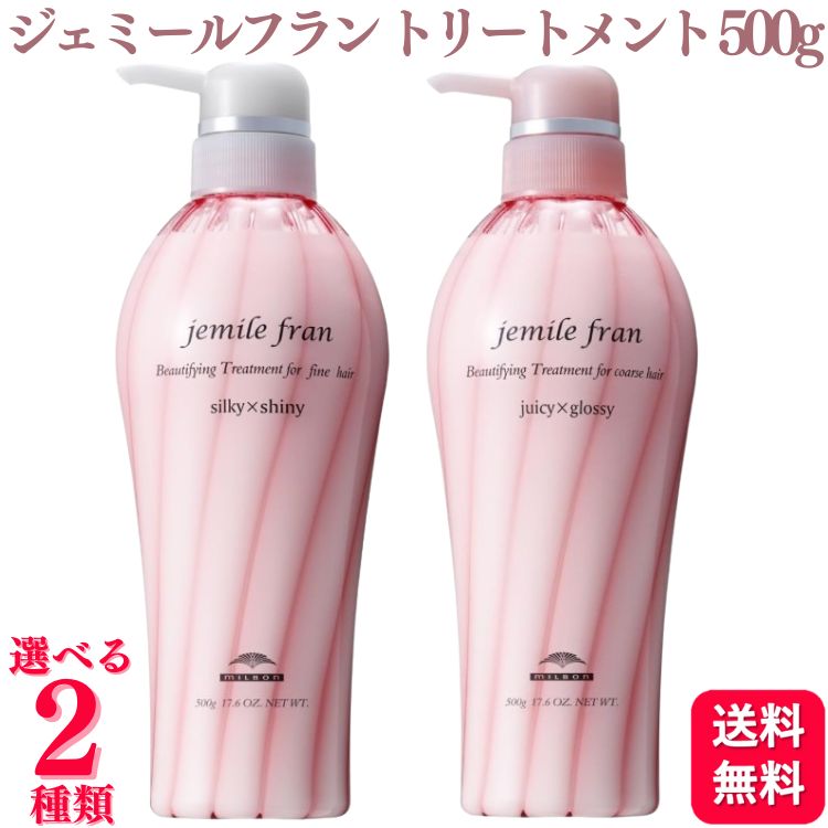 【2種類から選べる】 ミルボン ジェミールフラン トリートメント 500g シルキーシャイニー ジューシーグロッシー ヘアケア milbon 水分 油分 保湿 うるおい さらツヤ うるツヤ ヘアトリートメント ミルボントリートメント 送料無料 【シルキーシャイニー】・さらツヤ・キューティクル成分に似た毛髪保護成分スムースリピッドがさらっとしたすべりとツヤ感を表現します。【ジューシーグロッシー】・うるツヤ・水分と油分を同時にかかえ込み、毛髪へ補給できる保湿成分モイスチュアリピッドがうるおいのあるまとまりとツヤ感を表現します。