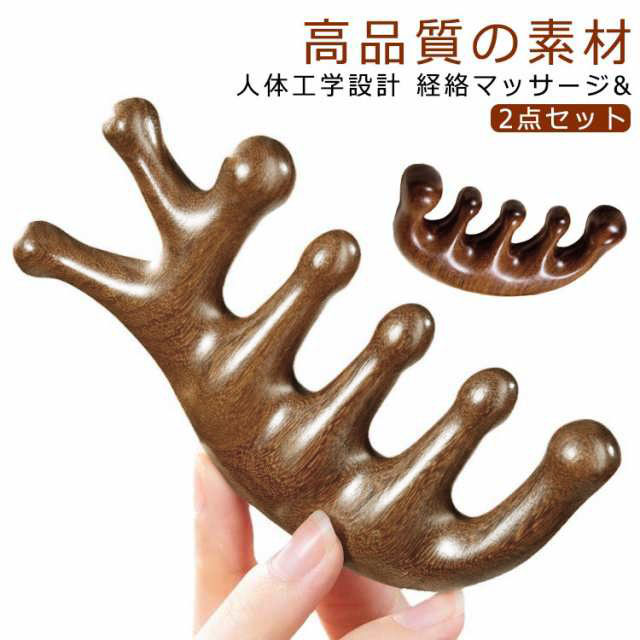 ■2点セット マッサージコーム 木製 サンダルウッド 頭皮マッサージ 檀木櫛 ヘアケア 経絡マッサージ 頭皮 天然木 頭皮ツボ押し リンパマッ
