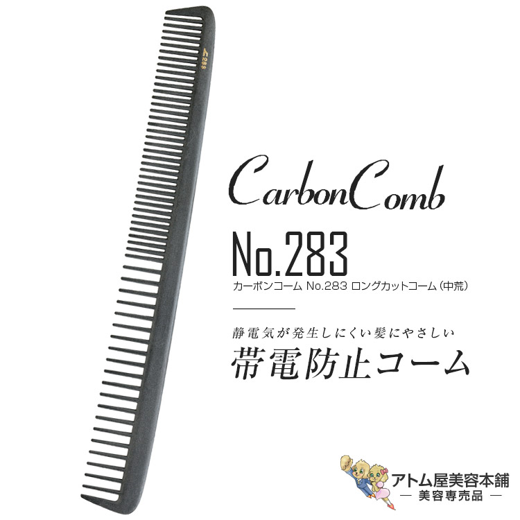 ■リーダー カーボンコーム No.283 ロングカットコーム(中荒)ブラック ヘアコーム カット 静電気 帯電 防止 対策 ヘアケア プロ用 業務用
