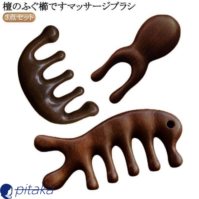 ■サンダルウッド 頭皮 木製 マッサージコーム 3点セット 経絡 経絡マッサージ ヘアケア 檀木櫛 天然木 グッズ リンパマッサージ 多機能 ツ