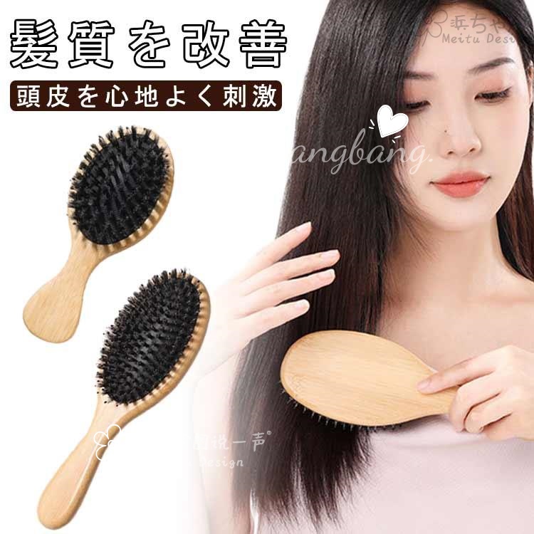 艶髪 櫛 くし 木製 ヘアブラシ コーム メンズ ヘアケア ヘアブラシ 地肌の痛くない 静電気防止 クッションブラシ 頭皮マッサージ サラサラ 豚毛ブ